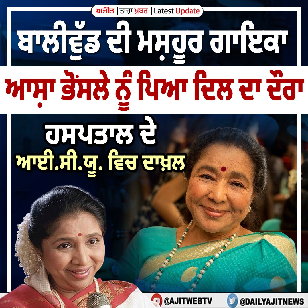 16ਬਾਲੀਵੁੱਡ ਦੀ ਮਸ਼ਹੂਰ ਗਾਇਕਾ ਆਸ਼ਾ ਭੋਂਸਲੇ ਨੂੰ ਪਿਆ ਦਿਲ ਦਾ ਦੌਰਾ, ਹਸਪਤਾਲ ਦੇ ਆਈਸੀਯੂ ਵਿਚ ਦਾਖ਼ਲ
