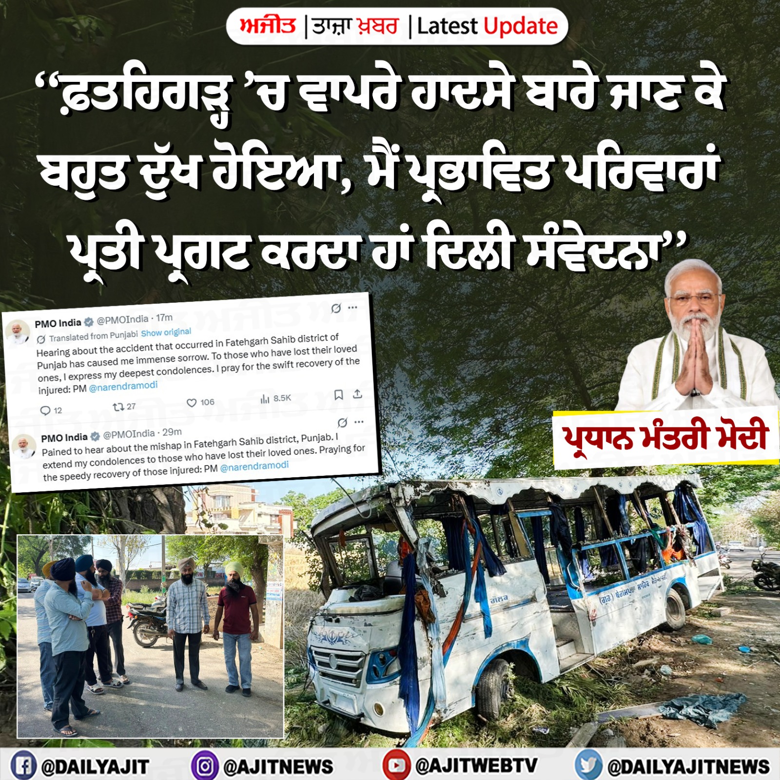 ਗੰਭੀਰ ਜ਼ਖਮੀ ਸ਼ਰਧਾਲੂਆਂ ਨੂੰ ਚੰਡੀਗੜ੍ਹ ਪੀ.ਜੀ.ਆਈ. ਰੈਫਰ ਕਰ ਦਿੱਤਾ ਗਿਆ ਹੈ। ਬੱਸ ਵਿਚ ਸਵਾਰ ਸ਼ਰਧਾਲੂ ਬੱਸੀ ਪਠਾਣਾ ਦੇ ਨੇੜੇ ਪਿੰਡ ਮੇਨ ਮਾਜਰੀ ਦੇ ਸਨ।