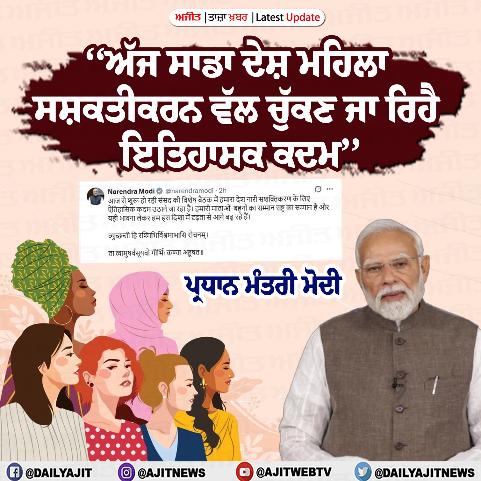 ਨਵੀਂ ਦਿੱਲੀ, 16 ਅਪ੍ਰੈਲ- ਮਹਿਲਾ ਰਾਖਵਾਂਕਰਨ ਐਕਟ ਵਿਚ ਸੋਧ ਲਈ ਅੱਜ ਸੰਸਦ ਵਿਚ ਤਿੰਨ ਬਿੱਲ ਪੇਸ਼ ਕੀਤੇ ਜਾਣਗੇ। ਇਹ ਬਿੱਲ 2029 ਤੋਂ ਲੋਕ ਸਭਾ ਅਤੇ ਵਿਧਾਨ ਸਭਾਵਾਂ ਵਿਚ ਔਰਤਾਂ ਲਈ 33% ਰਾਖਵਾਂਕਰਨ ਦਾ ਪ੍ਰਸਤਾਵ ਰੱਖਦੇ ਹਨ। ਇਸ ਉਦੇਸ਼ ਲਈ ਤਿੰਨ ਦਿਨਾਂ ਦਾ ਵਿਸ਼ੇਸ਼ ਸੈਸ਼ਨ ਬੁਲਾਇਆ ਗਿਆ ਹੈ।