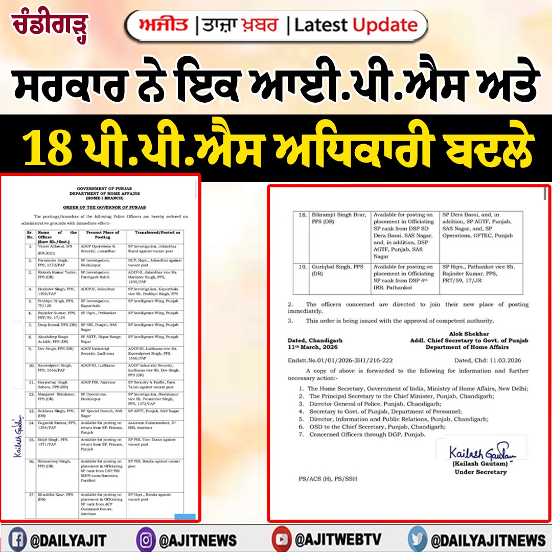 ਨਵੀਂ ਦਿੱਲੀ , 11 ਮਾਰਚ - ਦਿੱਲੀ ਦੇ ਮਾਣਯੋਗ ਲੈਫਟੀਨੈਂਟ ਗਵਰਨਰ, ਤਰਨਜੀਤ ਸਿੰਘ ਸੰਧੂ ਨੂੰ ਅਹੁਦਾ ਸੰਭਾਲਣ 'ਤੇ ਹਰ ਪਾਸੇ ਤੋਂ ਵਧਾਈਆਂ ਮਿਲ ਰਹੀਆਂ ਹਨ ।ਉਨ੍ਹਾਂ ਕਿਹਾ ਕਿ ਇਸ ਮੌਕੇ 'ਤੇ ਮੈਨੂੰ ਰਾਧਾ ਸੁਆਮੀ ਸਤਿਸੰਗ ...
