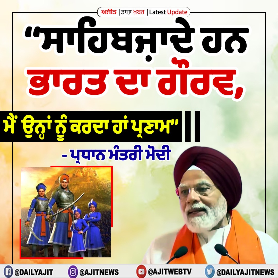 ਨਵੀਂ ਦਿੱਲੀ , 26 ਦਸੰਬਰ - ਦਿੱਲੀ ਦੇ ਵਾਤਾਵਰਨ ਮੰਤਰੀ ਮਨਜਿੰਦਰ ਸਿੰਘ ਸਿਰਸਾ ਨੇ ਕਿਹਾ, "2022 ਵਿਚ, ਪ੍ਰਧਾਨ ਮੰਤਰੀ ਮੋਦੀ ਨੇ 'ਵੀਰ ਬਾਲ ਦਿਵਸ' ਦਾ ਐਲਾਨ ਕੀਤਾ ਅਤੇ ਇਸ ਨੂੰ ਬਾਬਾ ਜ਼ੋਰਾਵਰ ਸਿੰਘ ਜੀ ...