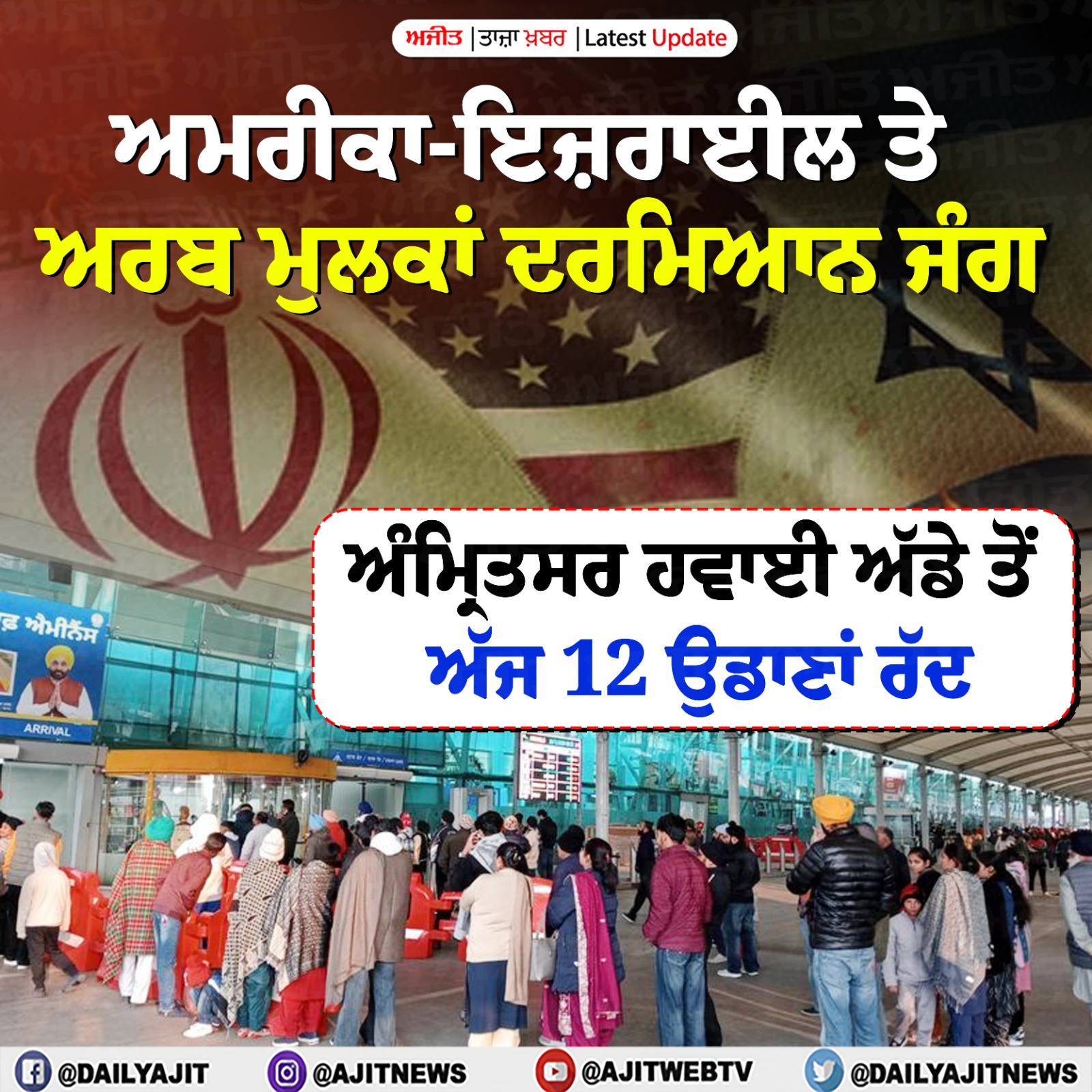 ਨਵੀਂ ਦਿੱਲੀ, 2 ਮਾਰਚ - ਵਧਦੇ ਈਰਾਨ-ਇਜ਼ਰਾਈਲ ਟਕਰਾਅ ਦੇ ਵਿਚਕਾਰ, ਦਿੱਲੀ ਦੇ ਇੰਦਰਾ ਗਾਂਧੀ ਅੰਤਰਰਾਸ਼ਟਰੀ (ਆਈਜੀਆਈ) ਹਵਾਈ ਅੱਡੇ 'ਤੇ ਉਡਾਣ ਸੰਚਾਲਨ ਬੁਰੀ ਤਰ੍ਹਾਂ ਵਿਘਨ ਪਿਆ ਹੈ, ਜਿਸ ਕਾਰਨ ਯਾਤਰੀ ਫ਼ਸ ਗਏ ਹਨ, ਉਨ੍ਹਾਂ ਕਿਹਾ ਕਿ ਮੱਧ ਪੂਰਬ ਲਈ ਬਹੁਤ ਸਾਰੀਆਂ ਉਡਾਣਾਂ ਰੱਦ ਹੋ ਰਹੀਆਂ ਹਨ।