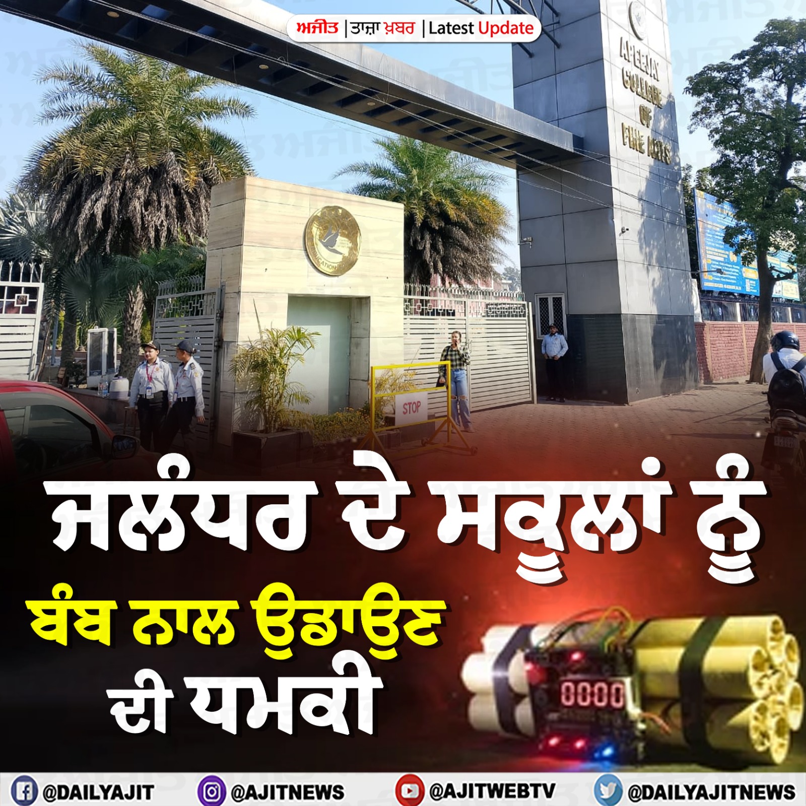 ਜਲੰਧਰ ਦੇ ਸਕੂਲਾਂ ਨੂੰ ਬੰਬ ਨਾਲ ਉਡਾਉਣ ਦੀ ਧਮਕੀ