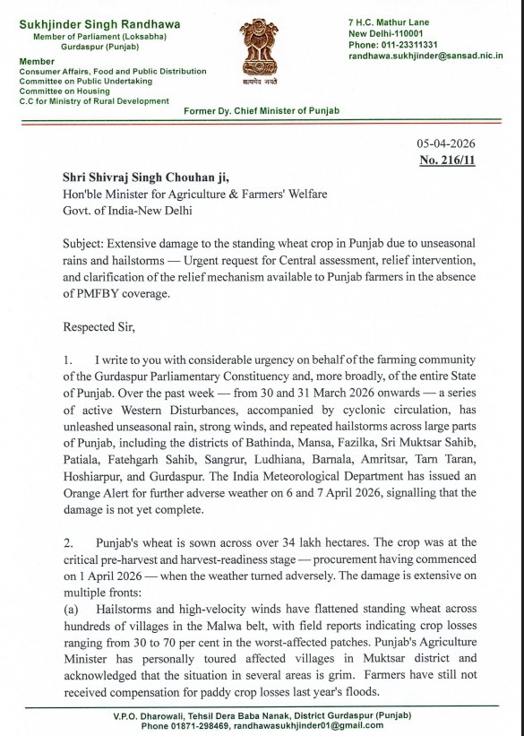ਤਹਿਰਾਨ (ਈਰਾਨ), 5 ਅਪ੍ਰੈਲ - ਨਿਊਜ਼ ਏਜੰਸੀ ਅਨੁਸਾਰ, ਈਰਾਨ ਦੇ ਵਿਦੇਸ਼ ਮੰਤਰੀ ਅੱਬਾਸ ਅਰਾਘਚੀ ਨੇ ਸੰਯੁਕਤ ਰਾਸ਼ਟਰ ਦੇ ਸਕੱਤਰ-ਜਨਰਲ ਐਂਟੋਨੀਓ ਗੁਟੇਰੇਸ ਨੂੰ ਰਸਮੀ ਤੌਰ 'ਤੇ ਇਕ ਪੱਤਰ ਲਿਖਿਆ ਹੈ, ਜਿਸ ਵਿਚ...