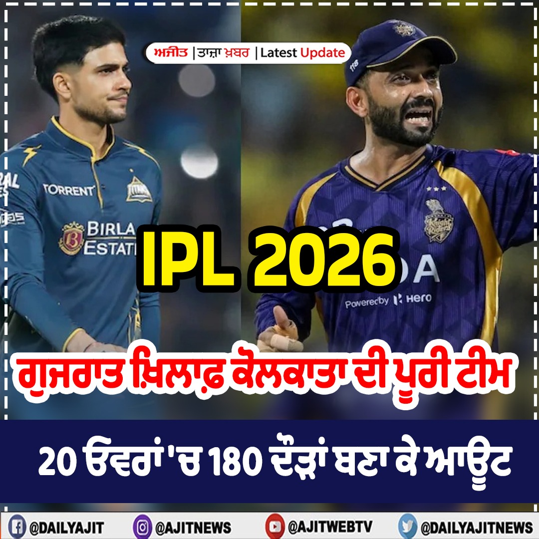 ਆਈ.ਪੀ.ਐੱਲ 2026 : ਕੋਲਕਾਤਾ ਨੇ ਗਵਾਈ 8ਵੀਂ ਵਿਕਟ, ਸੁਨੀਲ ਨਰਾਇਣ ਬਿਨਾਂ ਕੋਈ ਦੌੜ ਬਣਾਏ ਆਊਟ